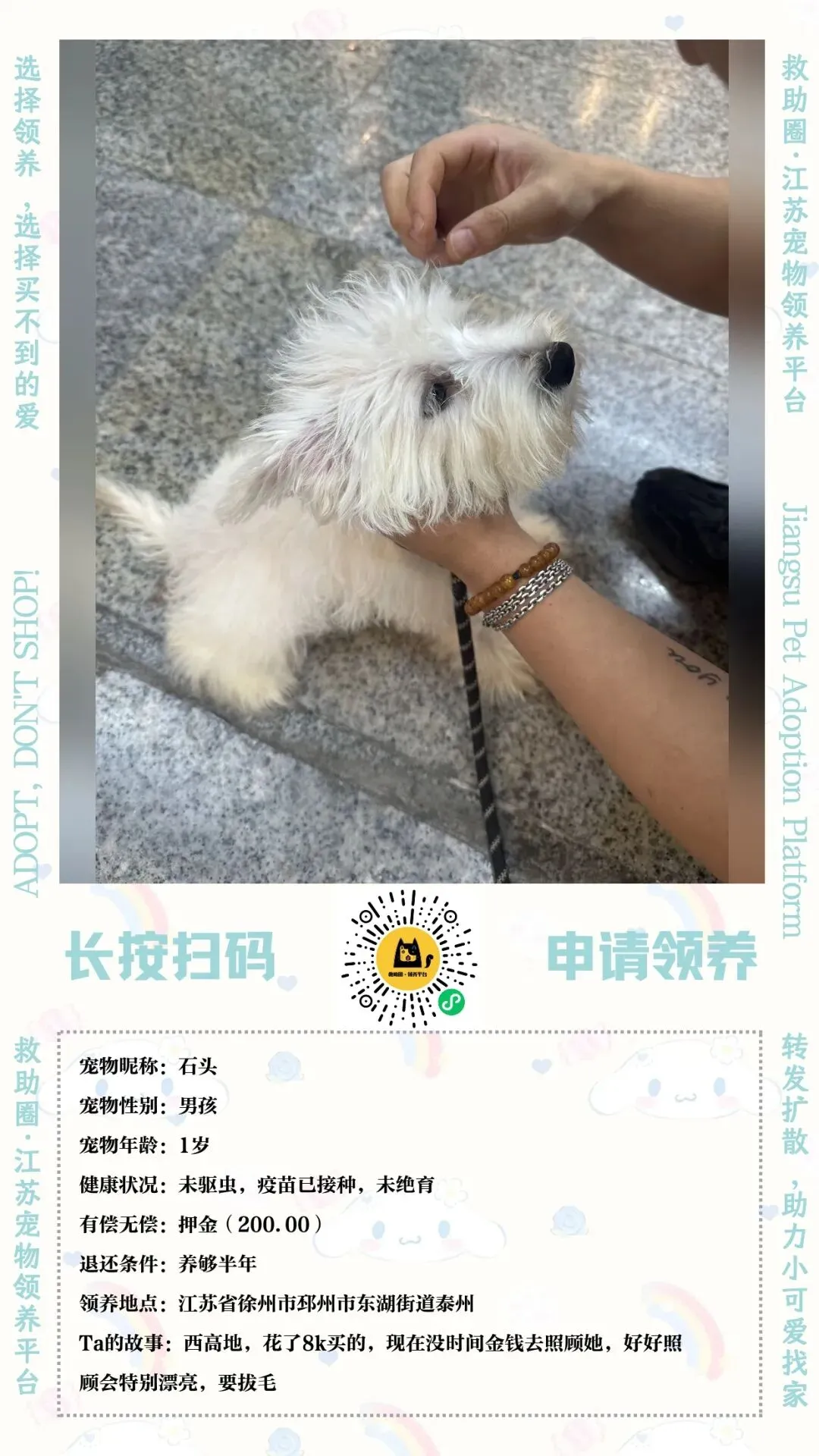 *注:以下领养须知为平台意见仅供参考,具体领养要求依据送养人而定。