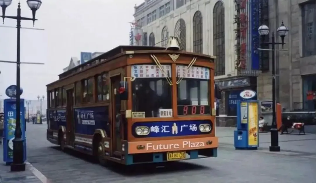 8.2003年,和平路上跑的900路金陵复古铛铛车。这种车当时有2台,运行的时候会发出模仿敲钟的电子音效。