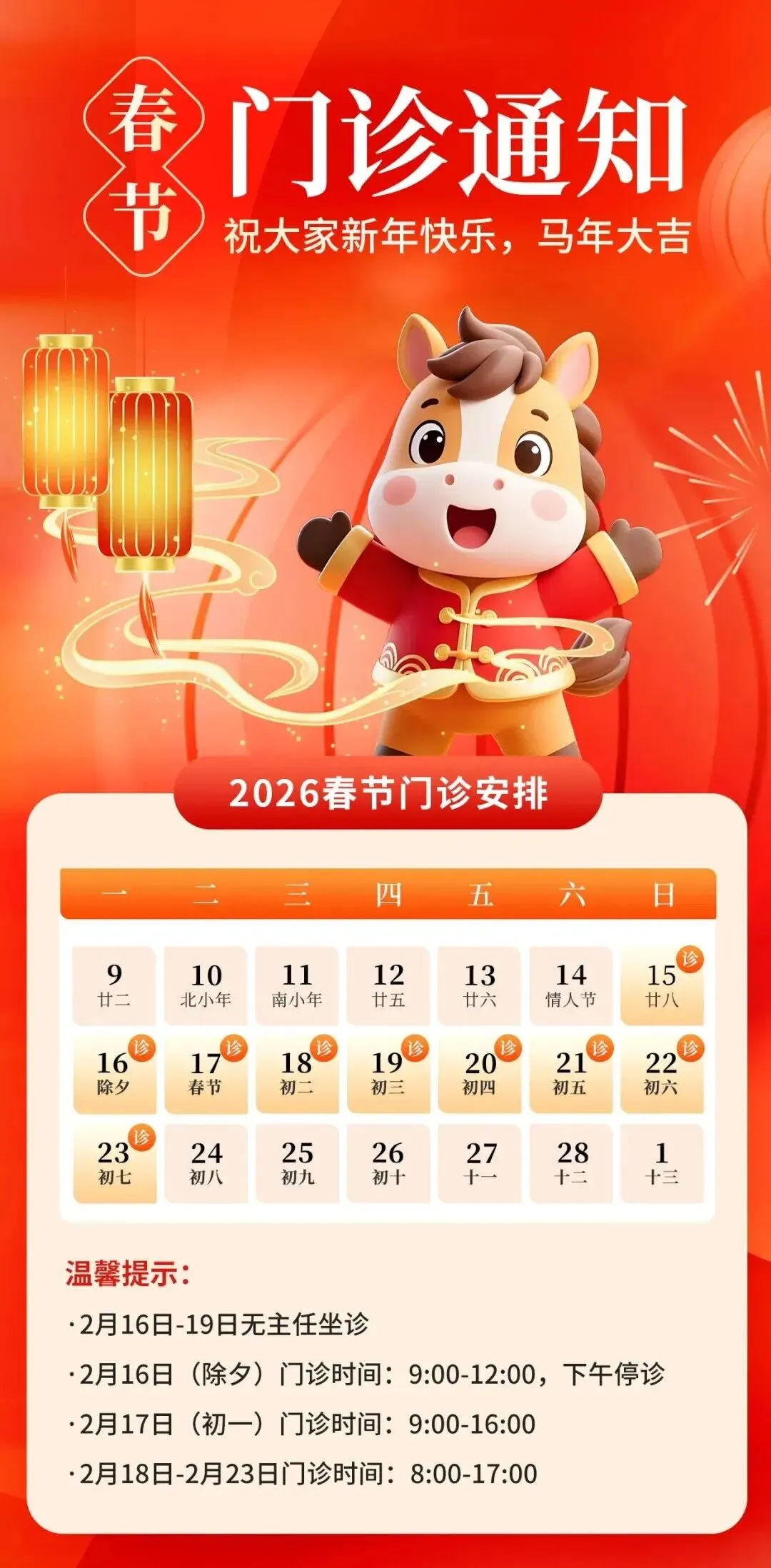 春节门诊安排