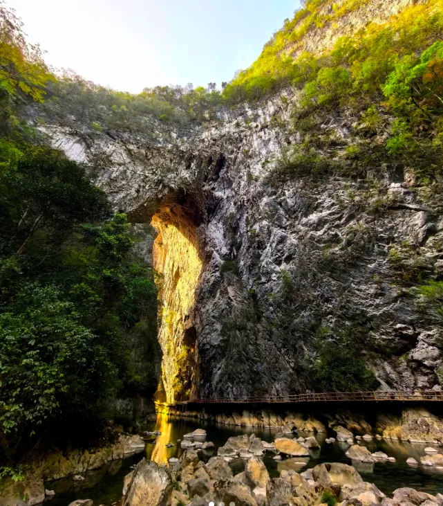 天生桥景区挤在山谷里,水声脆,桥洞凉,夏天一脚下去就打哆嗦,蚊子也爱这地儿,花露水先抹。