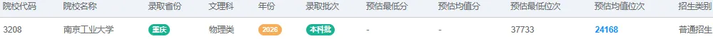 2026年“南京工业大学”的预估位次如下,仅供参考。