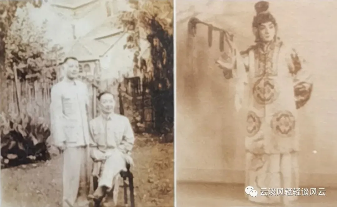 汪剑耘和梅兰芳(左)及其剧照(右)抗战时期,汪剑耘和甘贡三女儿甘长华在重庆结为伉俪。与甘家的联姻,铸就了汪剑耘得天独厚的艺术渊源,他曾被选为当地票界的“四大名票”之一。