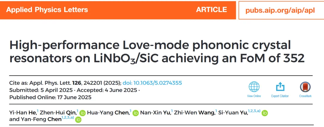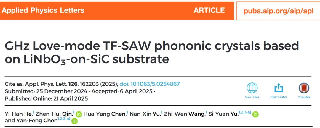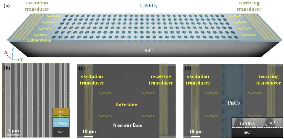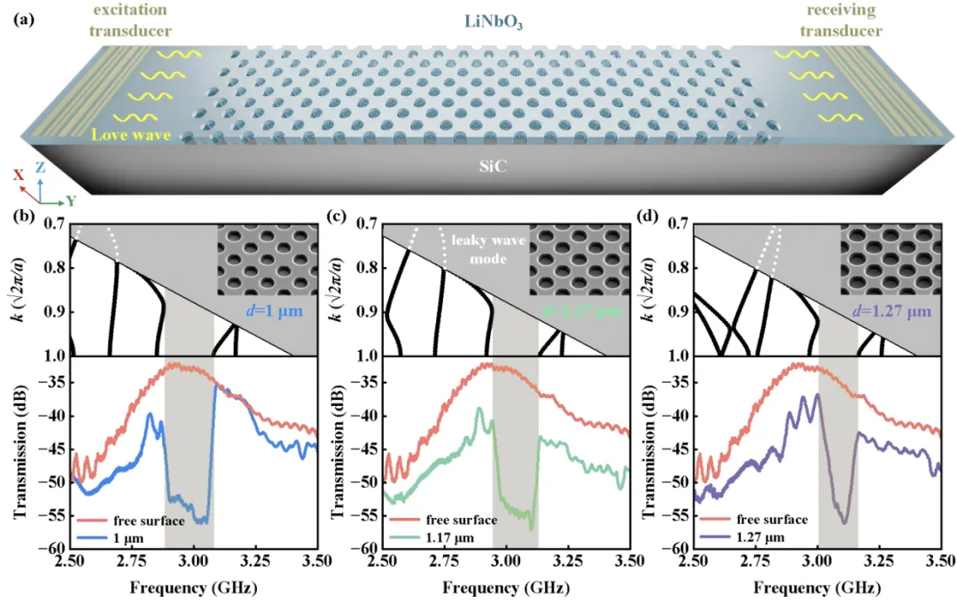 基于铌酸锂/碳化硅衬底的Love模式声子晶体有望扩展到复合或多层异质结构中,结合其它压电材料,例如AlN、ZnO、LiTaO₃等,以及不同衬底,如硅、蓝宝石和金刚石。这些结构能够提供更宽的带隙、优异的温度稳定性和增强的功率耐受性,使其成为下一代声学应用中的多功能候选材料。此外,基于TF-SAW的声子晶体在提高5G/6G通信系统中先进声学谐振器和滤波器的性能、改善微流控系统中微米级和纳米级颗粒的操控能力,以及增强声表面波与各种材料和物态之间的相互作用(例如斯格明子、NV色心和量子超导比特)方面,具有广阔的应用前景。