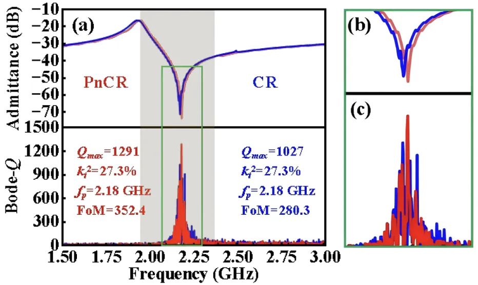 图7 声子晶体谐振器(PnCR)和传统谐振器(CR)的性能对比
