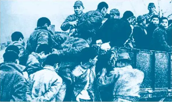 日军将抓来的南京民众押上汽车,拉走杀害。