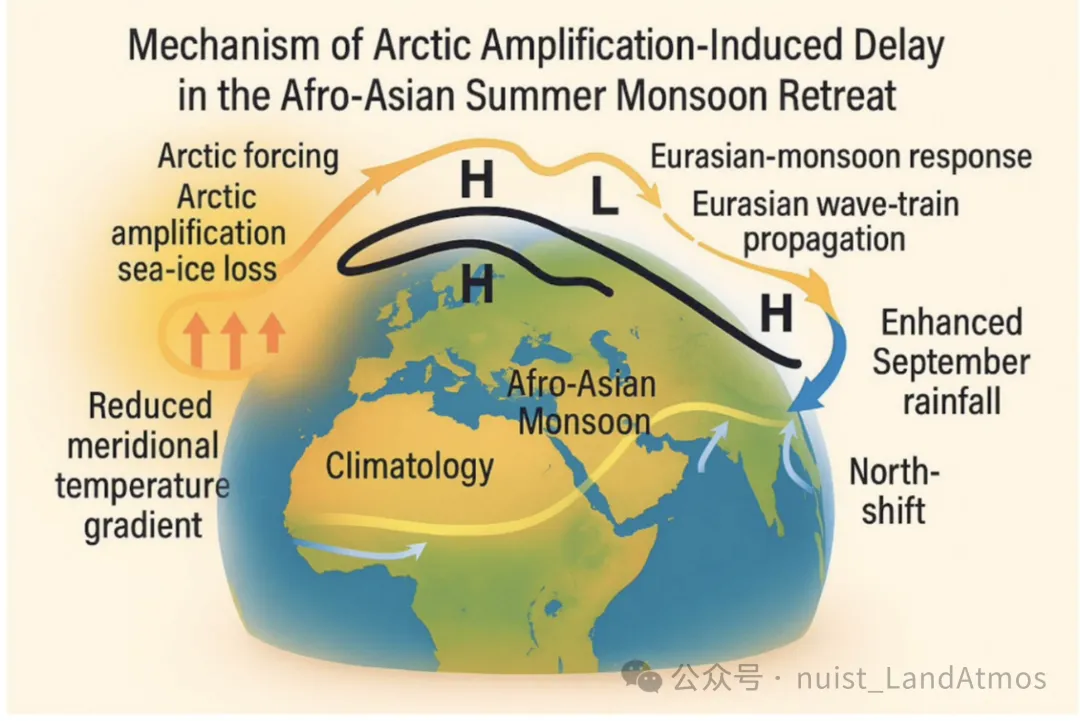 南京信息工程大学张杰、陈海山和青藏所马伟强等《Enviromental Research Letters》发文揭示北极增暖延迟亚非夏季风撤退导致秋季降水增加