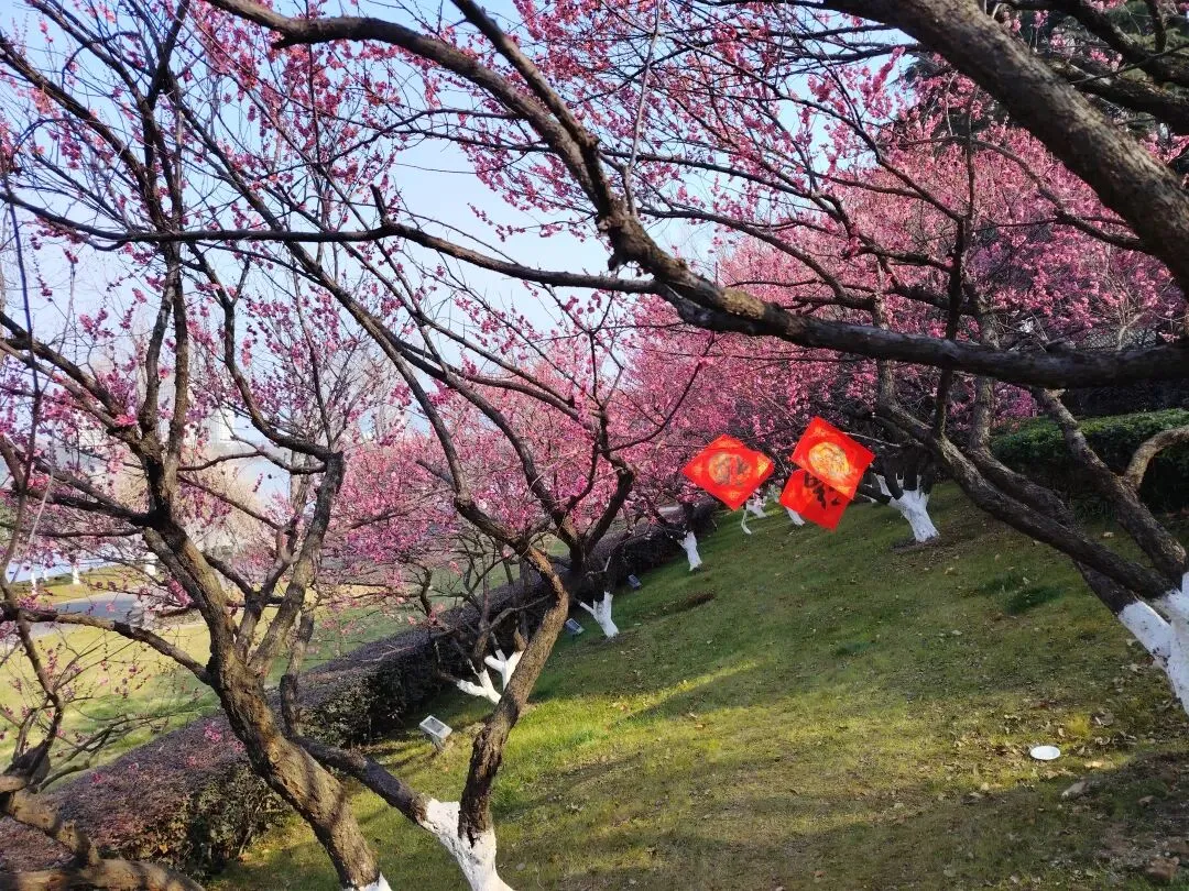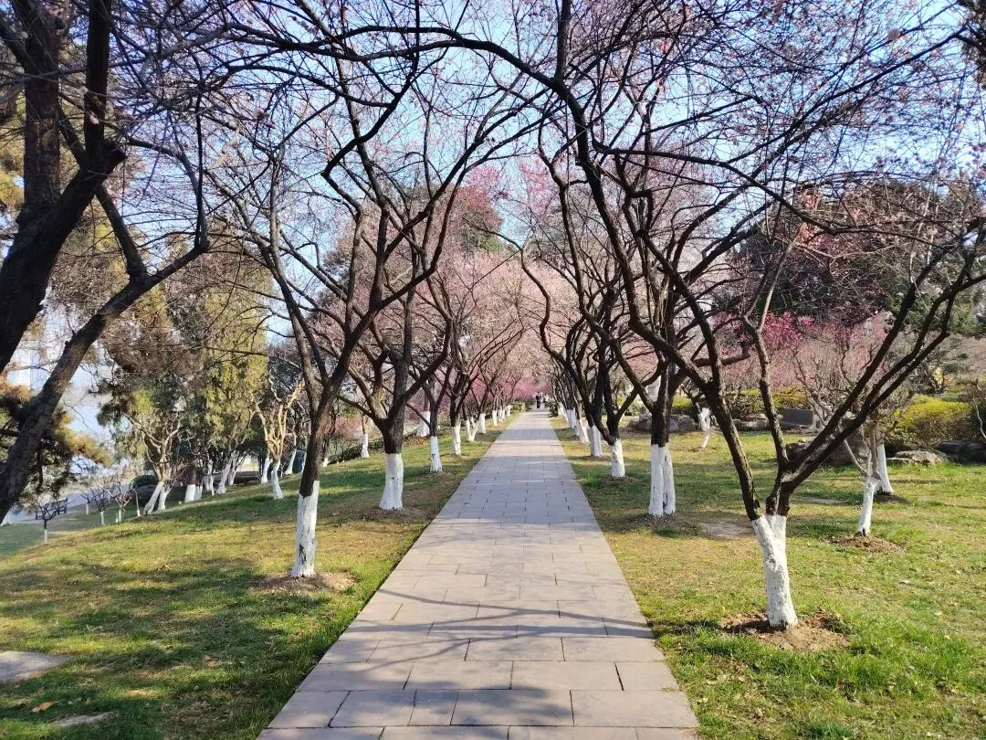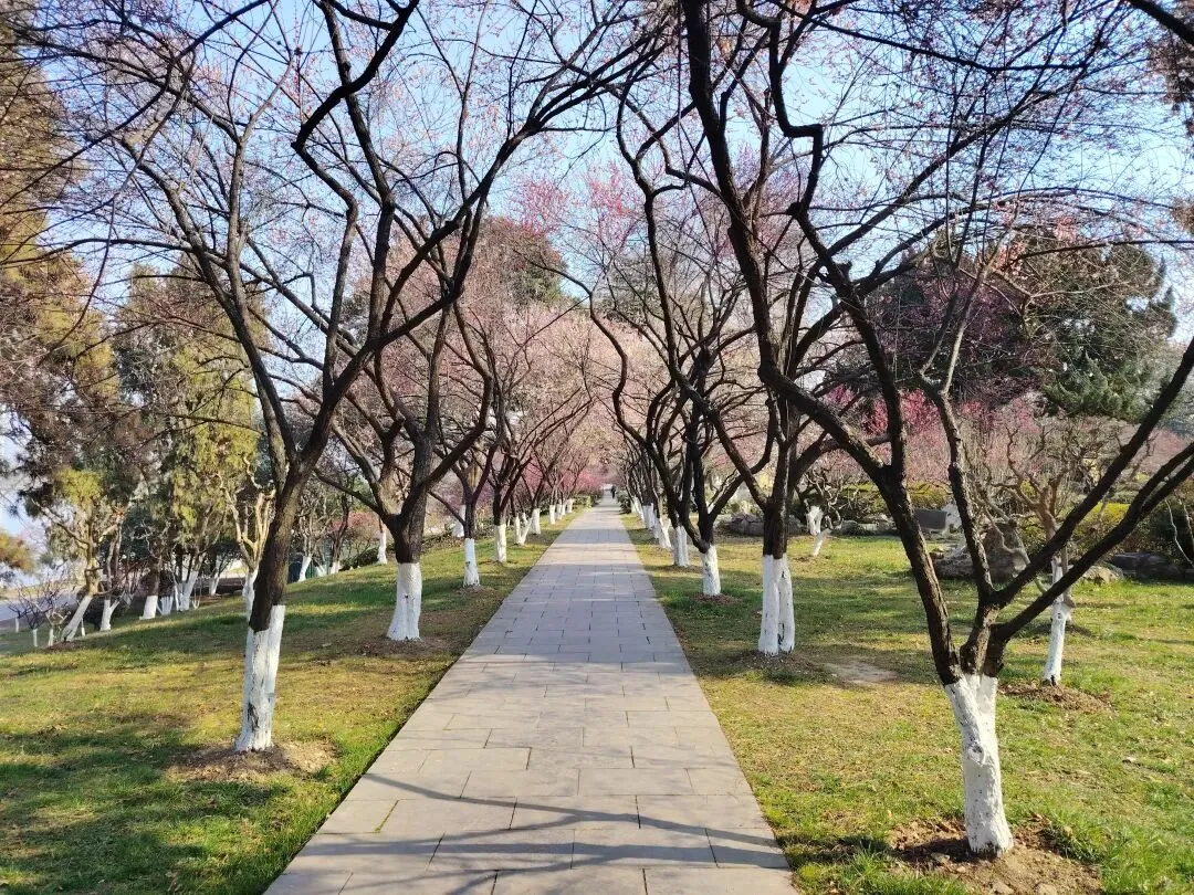 梅花隧道的旁边是美丽的碧波湖水: