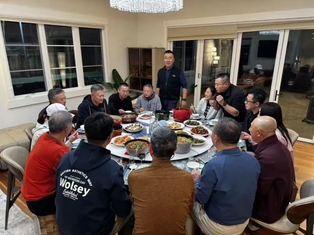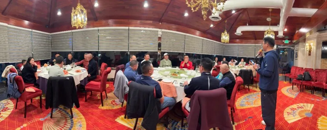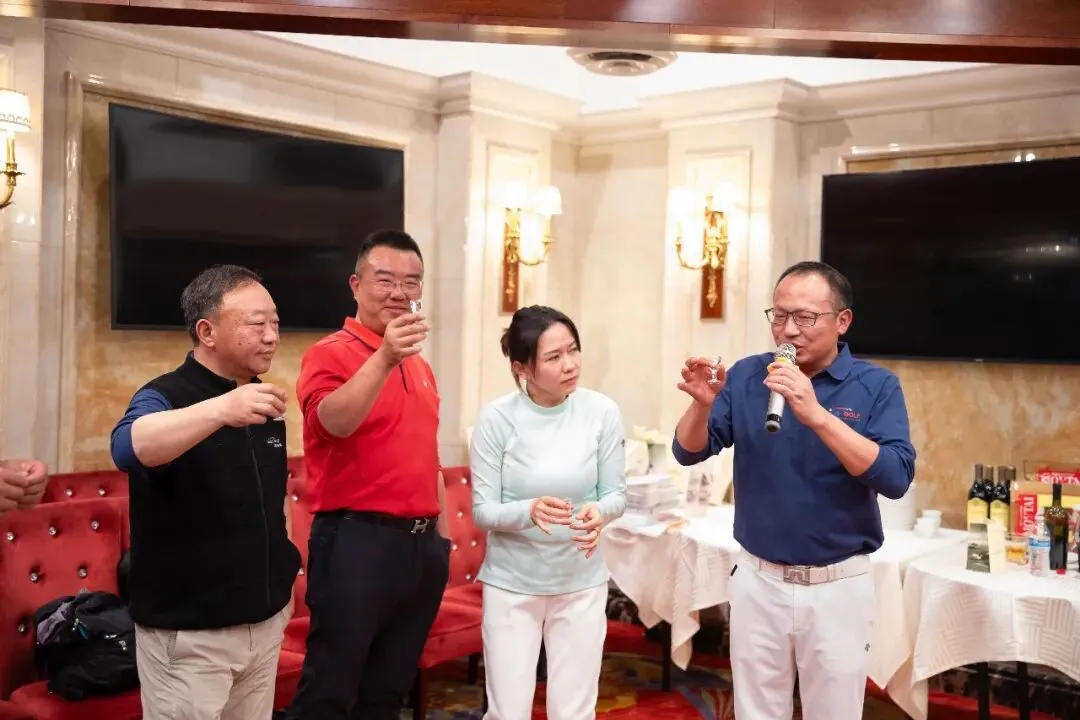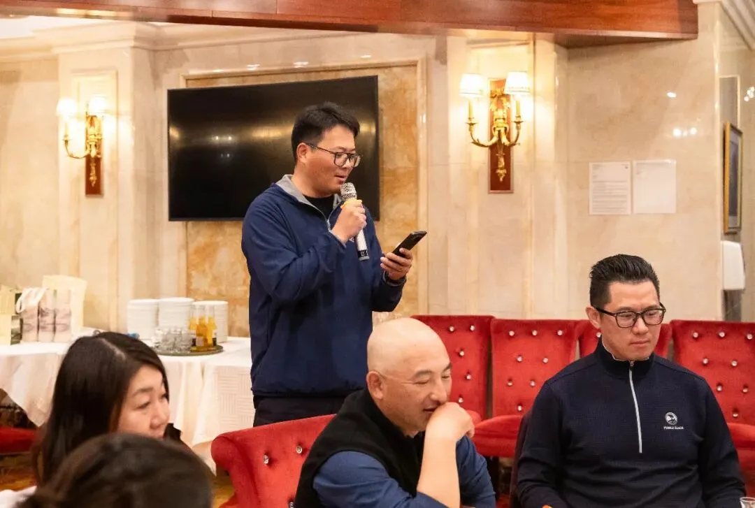 随后的发言环节,几位代表校友依次上台,回顾了本次美国之行的点点滴滴。从硅谷的科技之旅到旧金山的山海挥杆,从 1 号公路的沿途风光到洛杉矶的星光璀璨,每一段回忆都饱含着真挚的情感。有人感慨于高尔夫运动的魅力,有人感恩于同行伙伴的陪伴,也有人对未来的再次相聚充满了期待。发言结束后,全场举杯共饮,在觥筹交错间,大家分享着这几天的欢笑与感动,也为本次行程的正式落幕留下了最温暖的回忆。