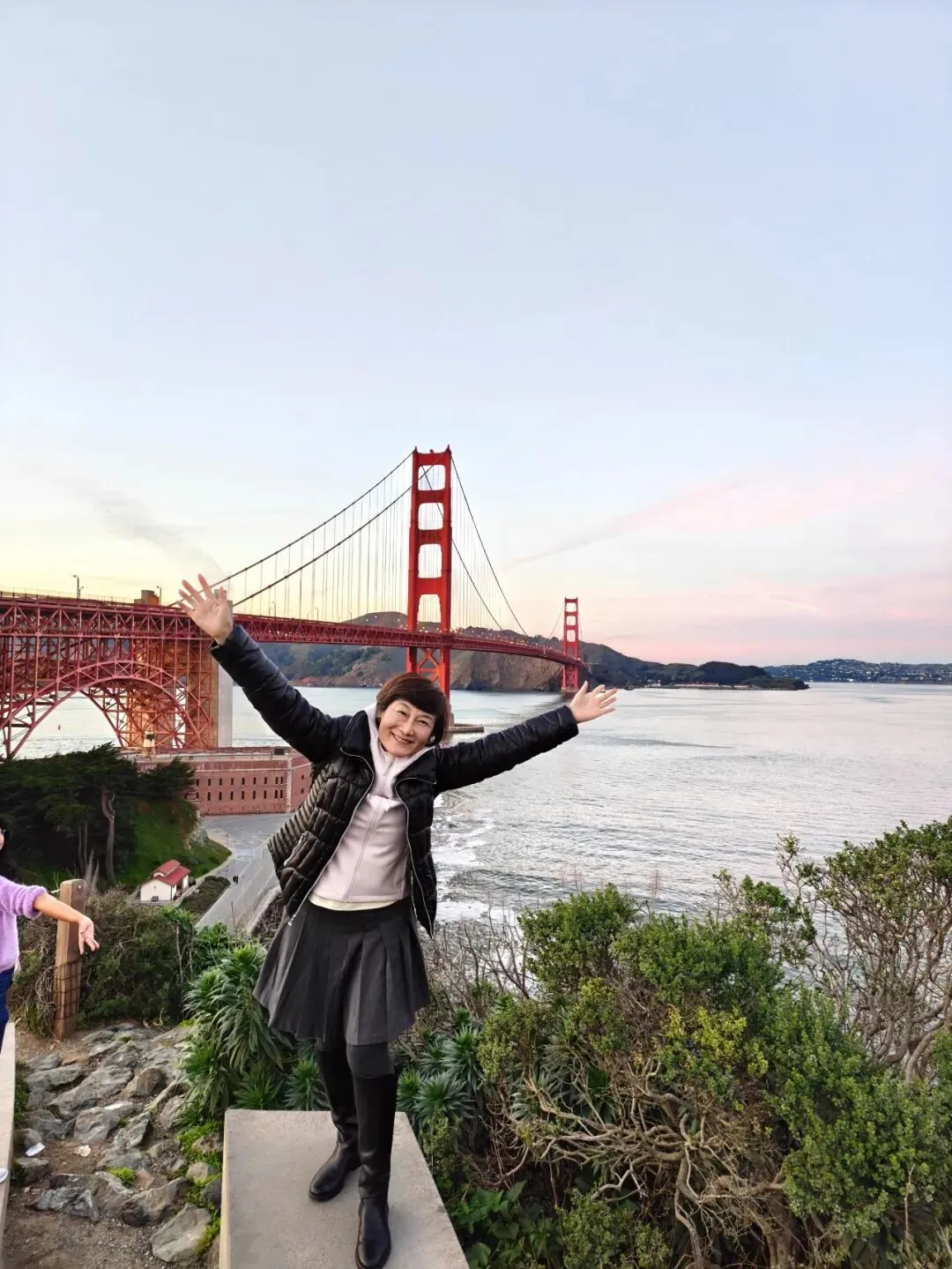 午后,我们驱车前往旧金山市区,打卡了标志性的金门大桥,在九曲花街感受蜿蜒的坡道风情,漫步于联合广场与唐人街,最后在渔人码头品尝了地道的酸面包,在旧金山艺术宫的古典建筑前定格了美好瞬间。