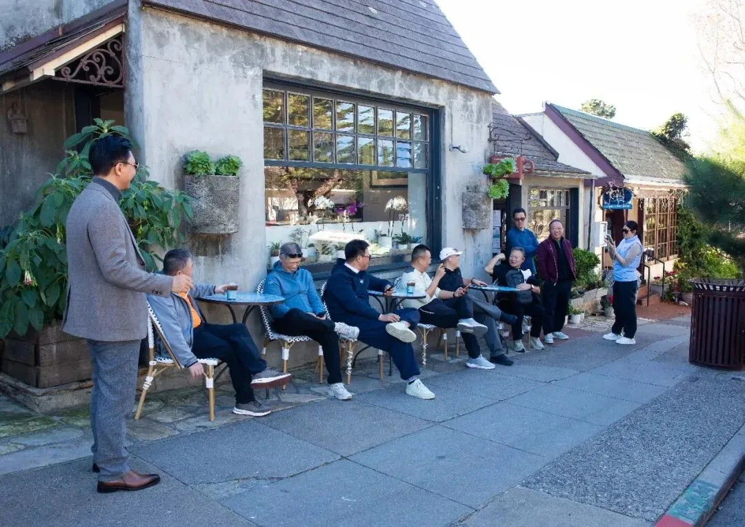 告别半月湾,我们沿着海岸线一路向南,邂逅了文艺清新的卡梅尔小镇。这里的街道铺满了鹅卵石,色彩斑斓的小屋错落有致,画廊、精品店与咖啡馆随处可见,每一处转角都藏着不期而遇的惊喜。大家漫步在小镇的街巷中,感受着加州海岸的慢时光,在十七英里海岸线上,我们邂逅了悬崖边的孤柏与壮阔的海景,海风裹挟着咸湿的气息,让人心旷神怡。