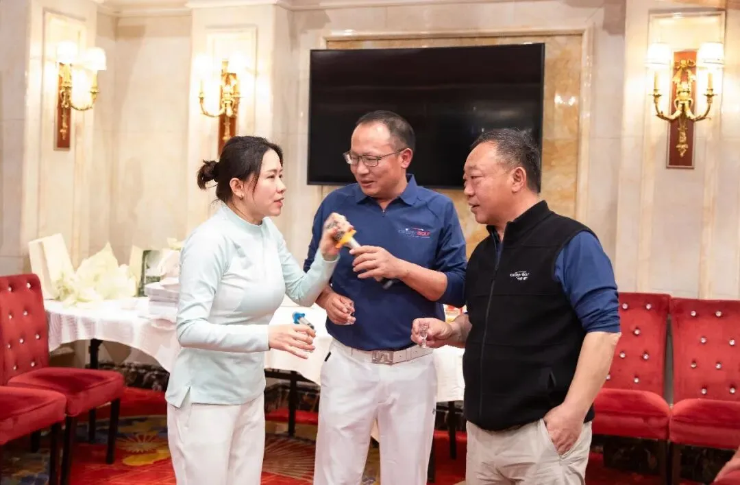 开球台旁,校友们凝神屏,随着清脆的击球声,小白球划破晨雾,精准飞向球道。前九洞的湖滨球道考验着大家的精准度,湖面的微风不时改变球的轨迹,不少校友在第二杆攻果岭时选择了保守策略,稳稳将球放在旗杆附近。