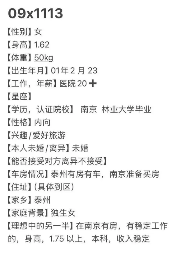 南京月老丨2001年,女,身高162,本科学历,医院工作,年薪20W