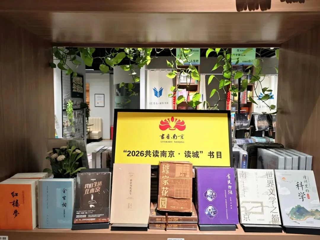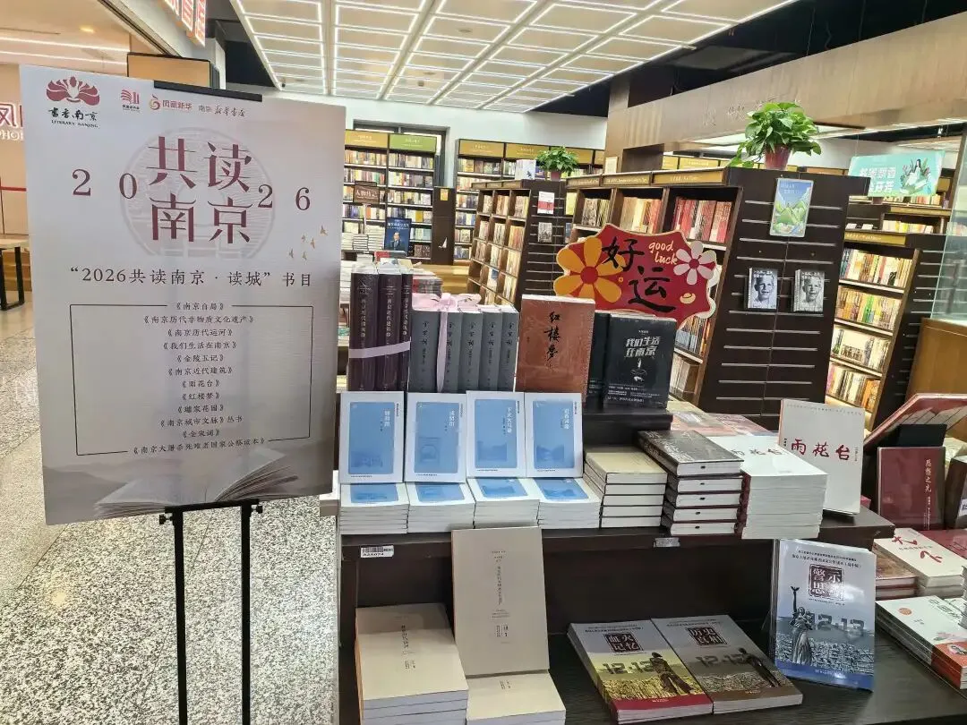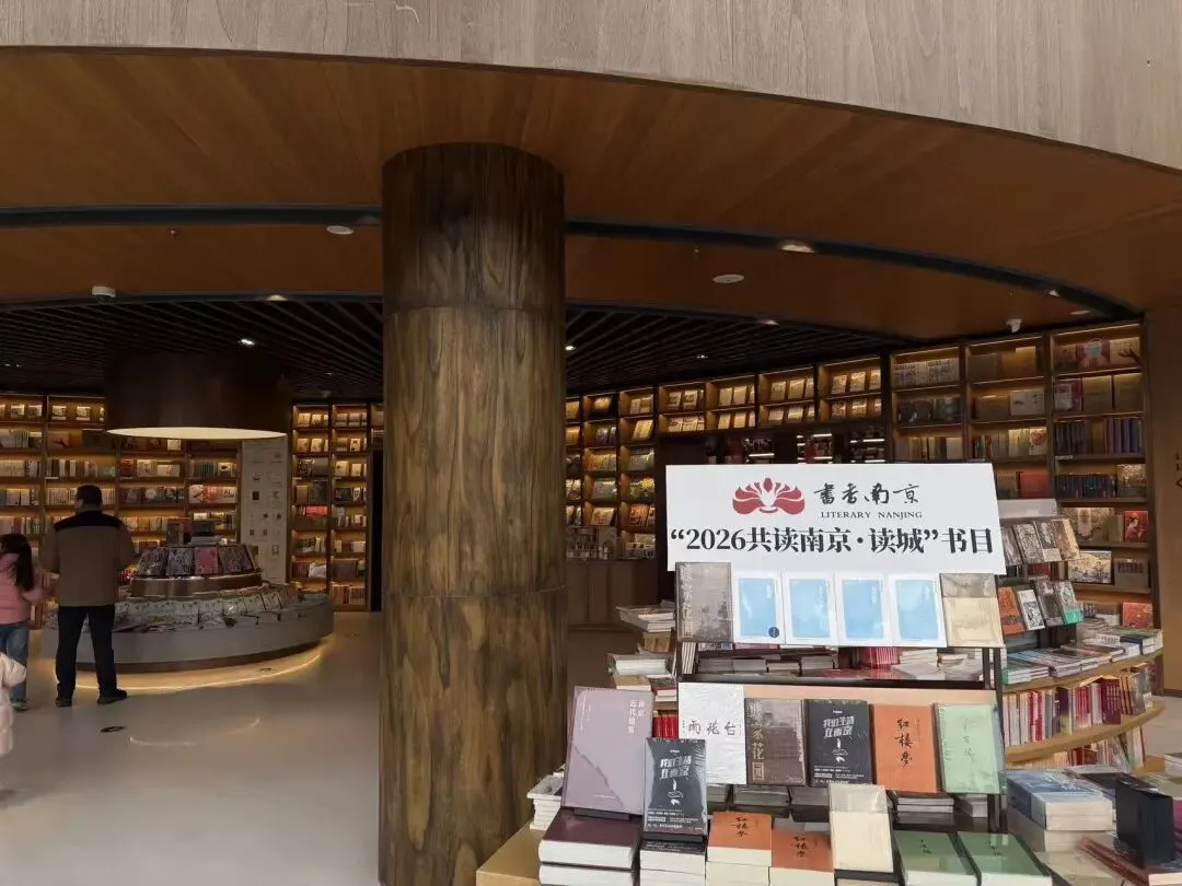 书店里聚焦了南京的历史文化、人文典故。“2026共读南京·读城”书目占据一整面墙,令人流连。