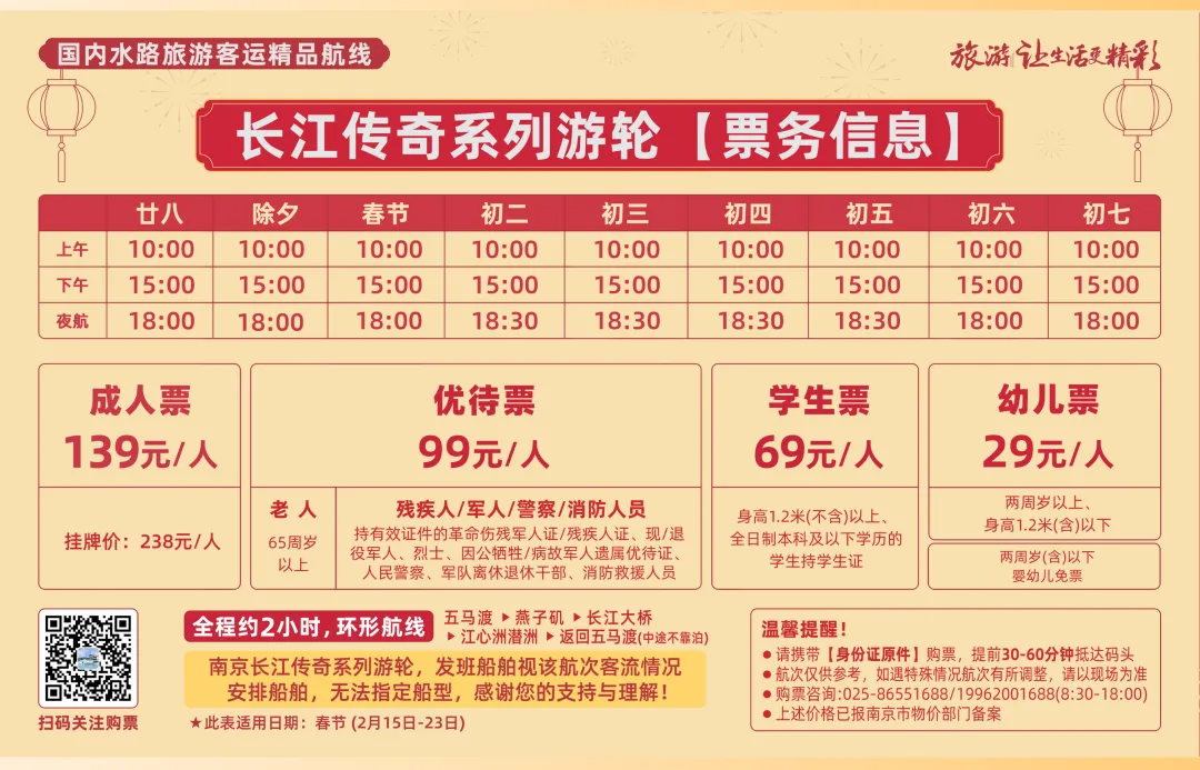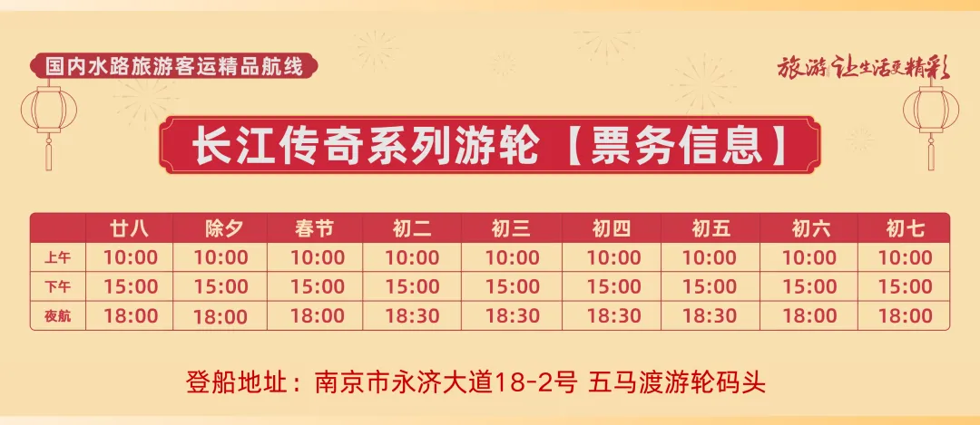 初二至初六:18:00夜游江景自助餐,一键解锁“漂”在长江上的金陵年味!