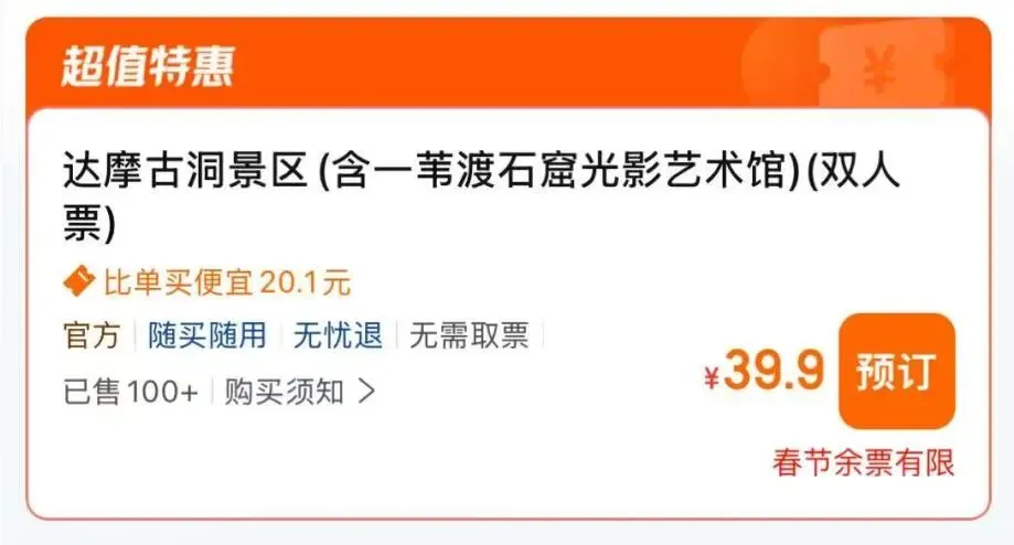 2月15日-2 月23日,凭抵达南京的火车票/飞机票 + 身份证,现场购票即可享受幕燕滨江“一苇渡”达摩石窟光影艺术馆半价优惠!无论您是乘高铁直达南京站、南京南站,还是搭飞机落地金陵,10 日内都能解锁这份 “来宁礼”,轻松打卡长江边的文化盛宴~