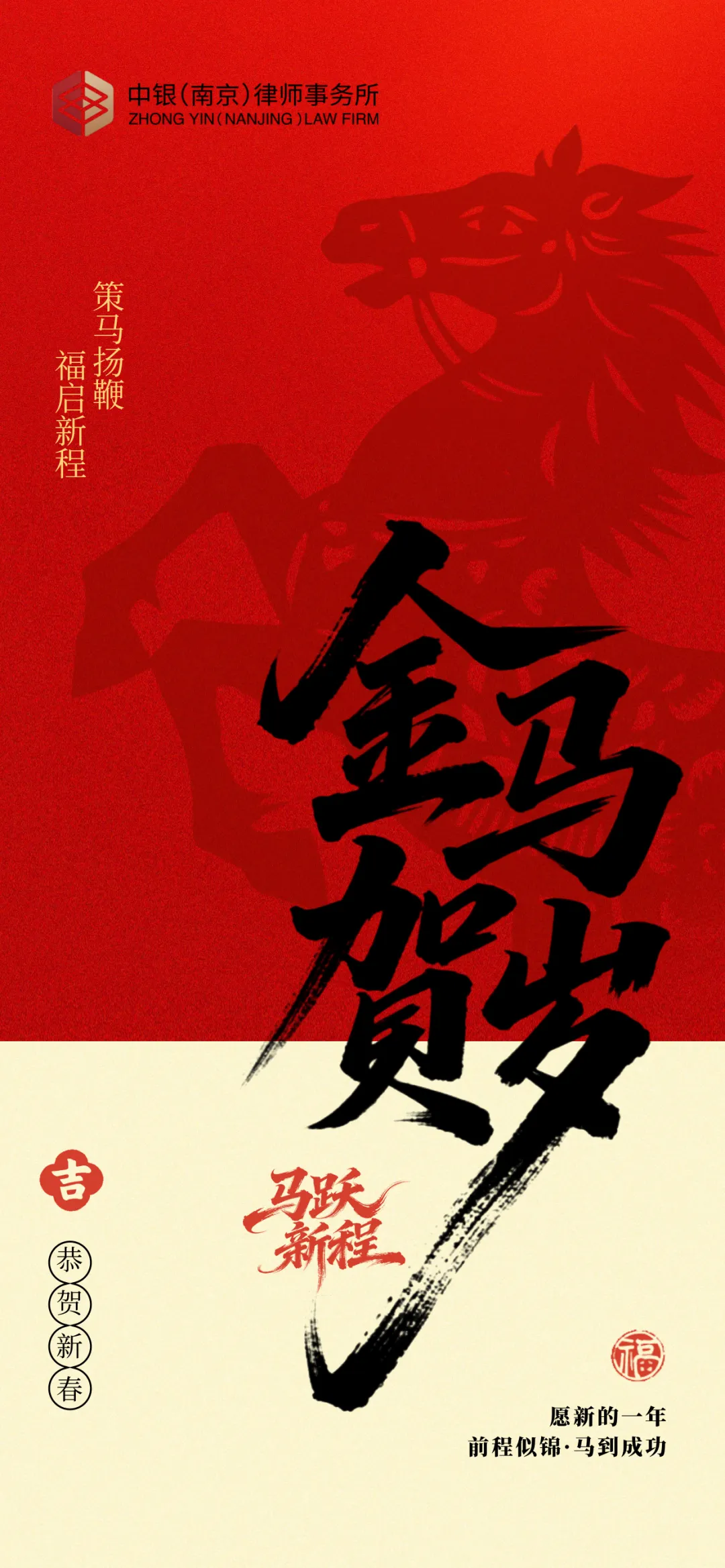 岁序常易,华章日新。值此佳节来临之际,北京中银(南京)律所全体律师向携手同行的诸位同仁、一路并肩的合作伙伴以及给予中银南京关心爱护的各界人士,致以最诚挚的问候与祝福,祝您春节快乐,万事顺遂!2026年春节放假通知:2026年2月15日(周日)至2026年2月23日(周一),开工时间为2026年2月24日(周二)。