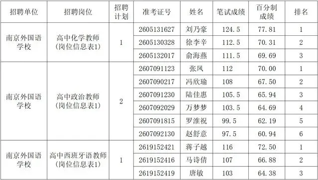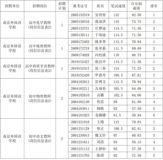 南京外国语学校2026年1月公开招聘教师进入资格复审人员名单公布