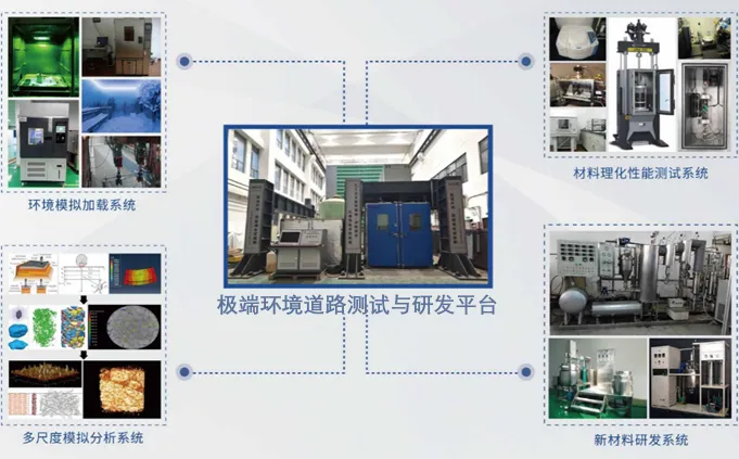 围绕高寒强紫外线大温差等复杂环境条件,研发了高海拔高寒极端环境下沥青铺装材料性能提升方案、高性能自流平环氧沥青混凝土等,对提升青藏公路桥面铺装的路用性能及服役寿命具有重要的理论和应用价值。
