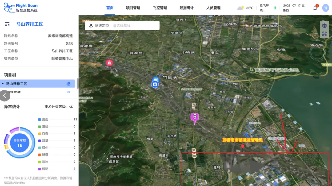 以“人工智能+低空飞行”为核心理念,聚焦综合立体交通基础设施与城市精细化运行场景,建立空域管控、航迹规划与智能识别等技术,构建了以公路养护、应急与施工低空服务平台产品矩阵为基础的低空业态。依托AI自主识别等技术,可实现城市道路、河道、公园等综合场景的多机协同巡查,助力城市治理降本增效。