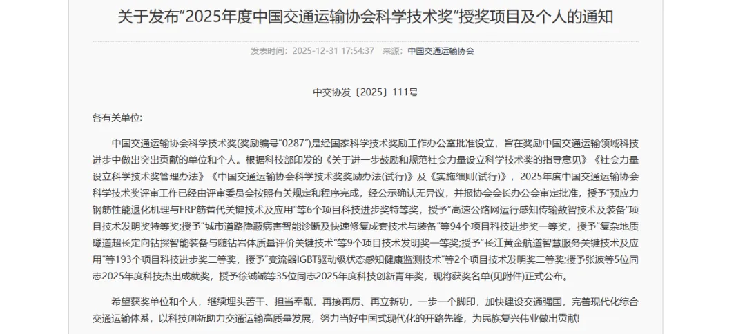 奋进这一年,我们科研成果再突破,科技赋能新产业。围绕绿色低碳和智能智慧两大核心方向,聚焦路面新材料、低碳路基、低空经济、高原冻土、交通装备、智能感知、综合交通智慧枢纽七大研究领域,科研人员潜心钻研、砥砺前行,推动科研成果从“实验室”走向“生产线”,多项核心技术成果已在多地重点交通工程中开展示范应用。