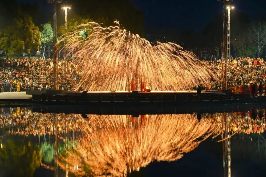 在钟鼓和鸣和柔美舞姿中,解锁平安喜乐的新春祈愿,让大家在秀丽山水间,完成从静心赏景到祈福纳祥的美好体验。