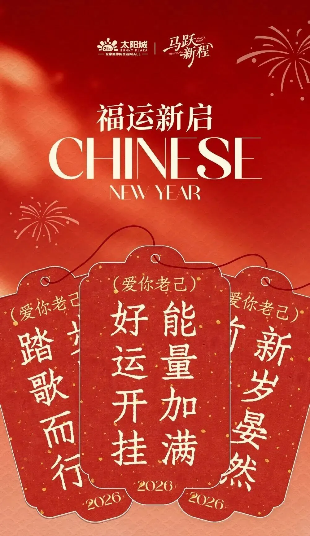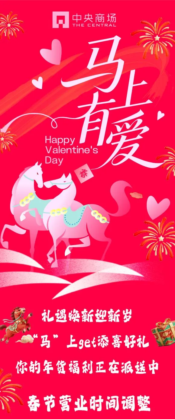 景枫即日起-2.15情人节福利!大牌美妆满额8.3折起单笔实付满1314还送100元礼物金;黄金珠宝满5200元减50元;2.20-2.23服饰888元购1000元现金券!另外再在景枫中心东北广场(近NIKE门)找到「马蹄哒哒哒」装置掀开马脚,现场扫码进入活动页面,前往指定商家盖满3个电子章,即可于1F客户满意中心(全家旁)领取1张福马小对联贴纸!