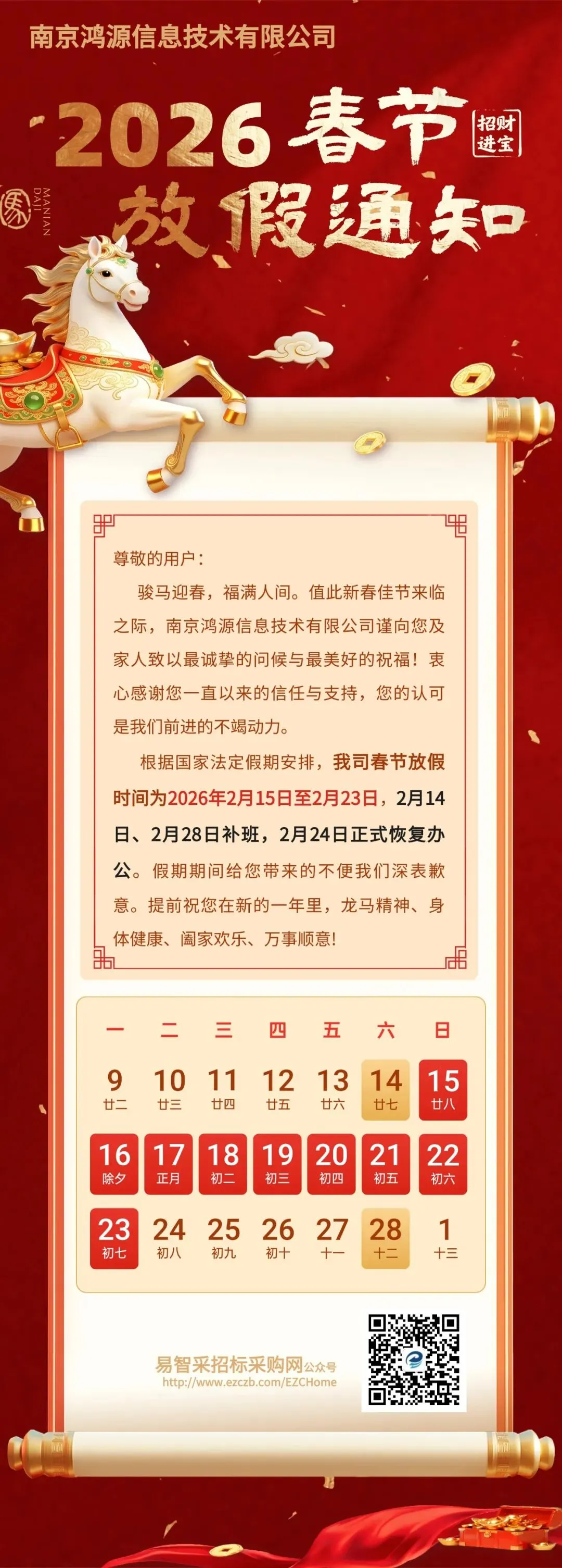 岁启新程,感恩同行!南京鸿源信息技术有限公司祝您新春快乐!