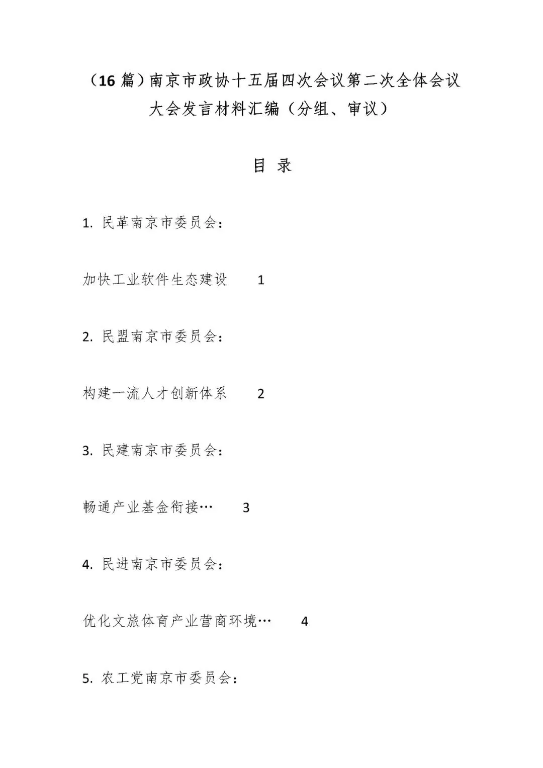 (16篇)南京市政协十五届四次会议第二次全体会议大会发言材料汇编(分组、审议)