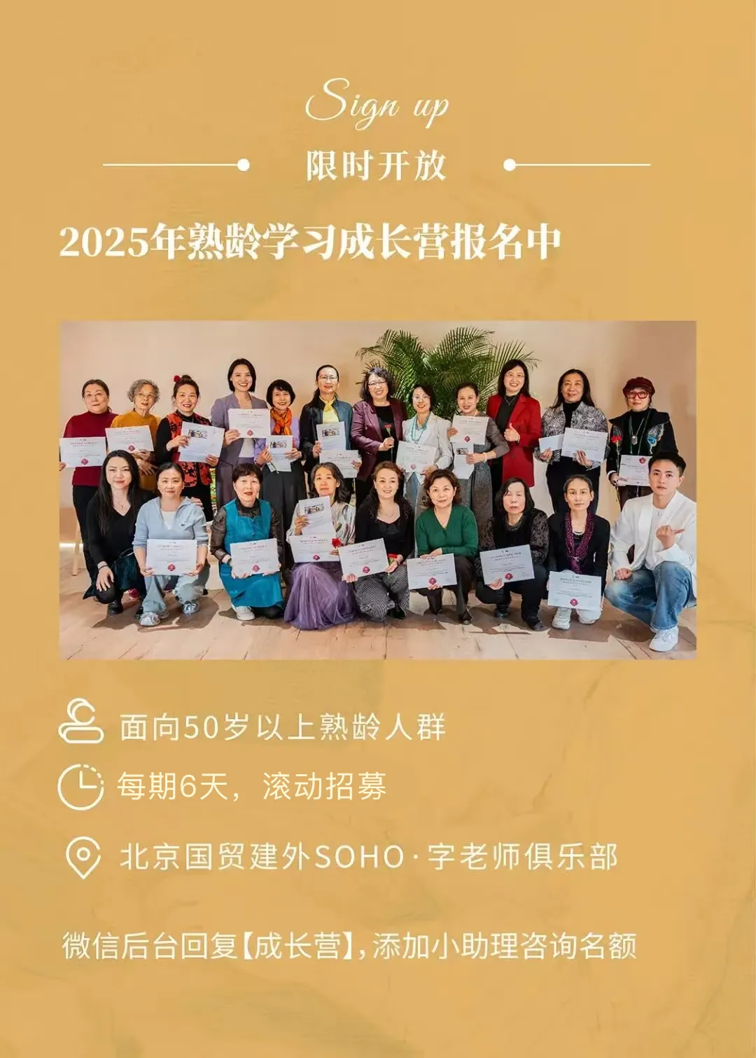 只要你年龄在50+,有梦想,敢挑战,就来报名吧!