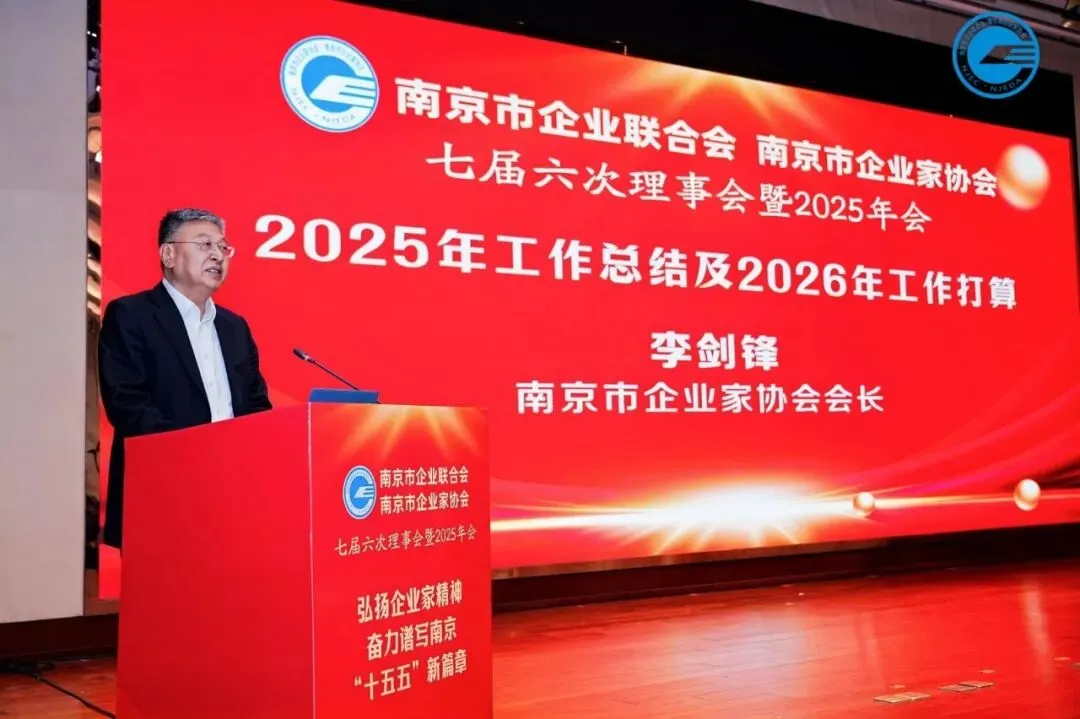 2026 年1 月 9 日,华山饭店暖意融融、群贤毕至,南京市企业联合会、南京市企业家协会七届六次理事会暨 2025 年会隆重召开。近300家企业代表欢聚一堂,总结过往成就、共商发展大计,为南京 “十五五” 开局起步、产业强市建设凝聚磅礴力量。南京市委副书记、市长李忠军亲临现场,以 “企业人”的亲切视角与企业家们深入交流、共话发展,并发表重要讲话,为全市企业高质量发展注入强劲动力。