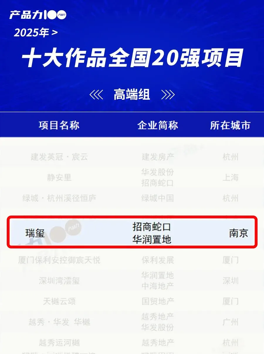 不仅如此,瑞玺RICI还是南京唯一入选“克而瑞2025中国房企产品力TOP20”的作品,代表了南京当下最好的产品水准。