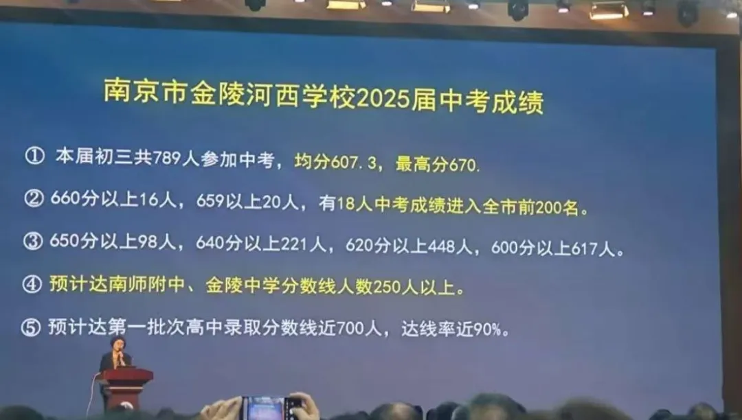 预计达南师附中、金陵中学分数线人数250人以上。预计达第一批次高中录取分数线近700人,达线率近90%。