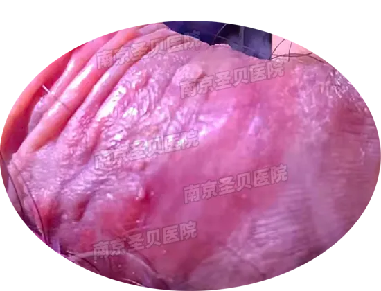 2周后随访,皮损周边较大疣体已基本脱落,肛门口已经能够辨识,皮损前后径为150mm,左右径为86mm。皮损已基本没有出血情况,周边见一些疣体脱落后的浅溃疡点。具体情况详见图4。