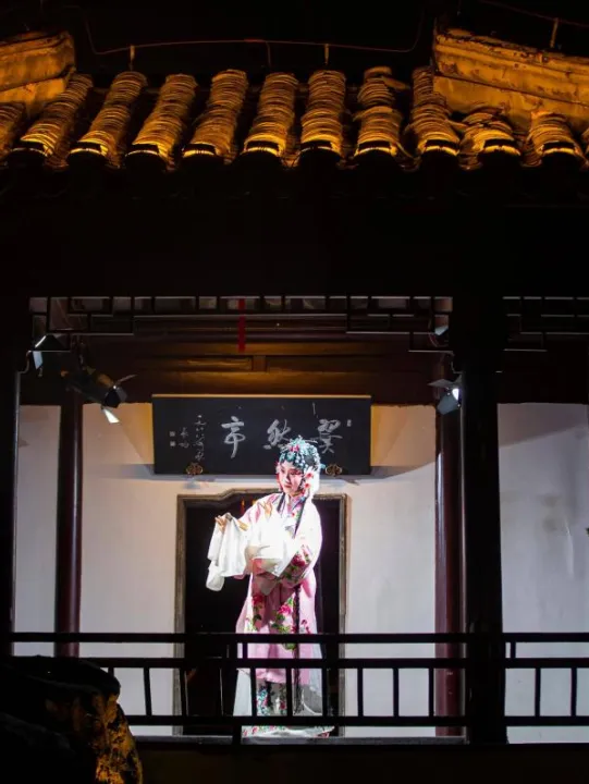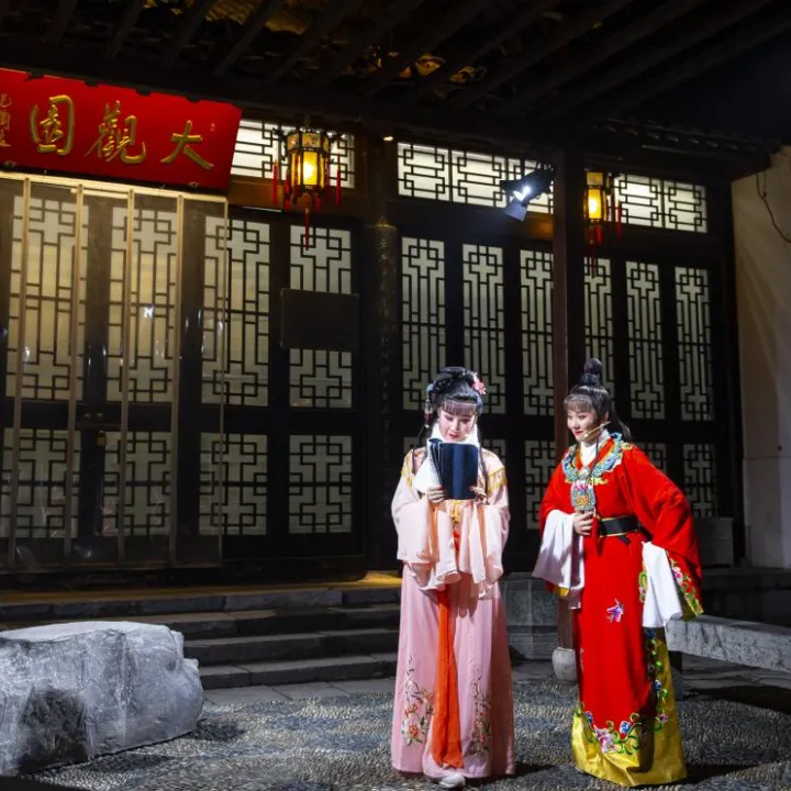 将传统演艺植入古典园林,结合瞻园廊、亭、厅的园林空间,沉浸式实景穿梭演出带领观众一夜赏尽四大名剧,走进诗情画意的金陵梦中景。