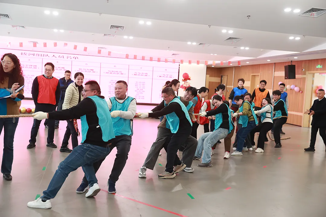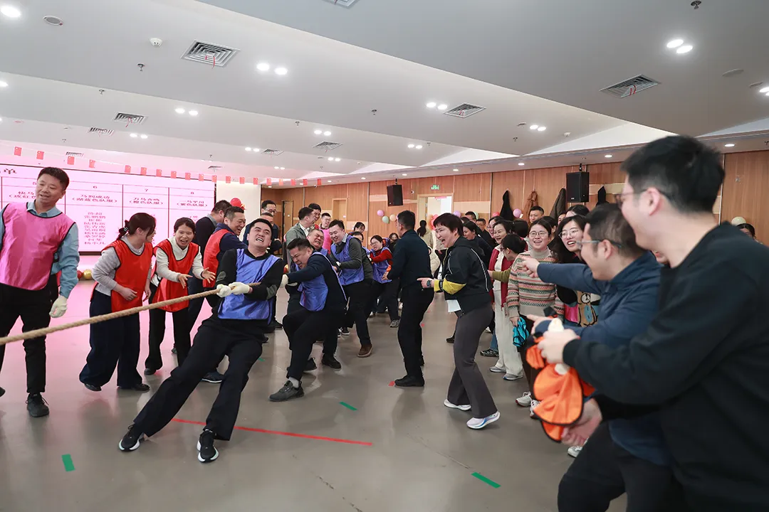 本次拔河比赛采取跨部门抽签的方式,随机组成八支队伍,穿着八种不同颜色的背心 。拔河哨声响起的那一瞬间,随机组队的那种生分感顿时烟消云散。粗粝的麻绳握进掌心,所有人同时身体后倾,把自己压成一张拉满的弓。“加油!加油!”场边的呐喊声汇成彩色的潮涌,红绸过线的一瞬,胜者相拥欢呼,失败者高呼再战。