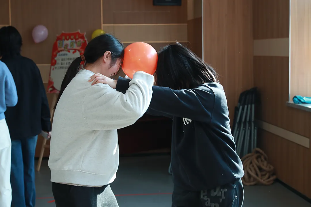 额头相抵,气球轻夹,两人如连体般步调一致。六十秒的合作时间里,没有你我之分,只有同频的呼吸与并肩的前行,大大增强彼此间的默契度与合作精神。