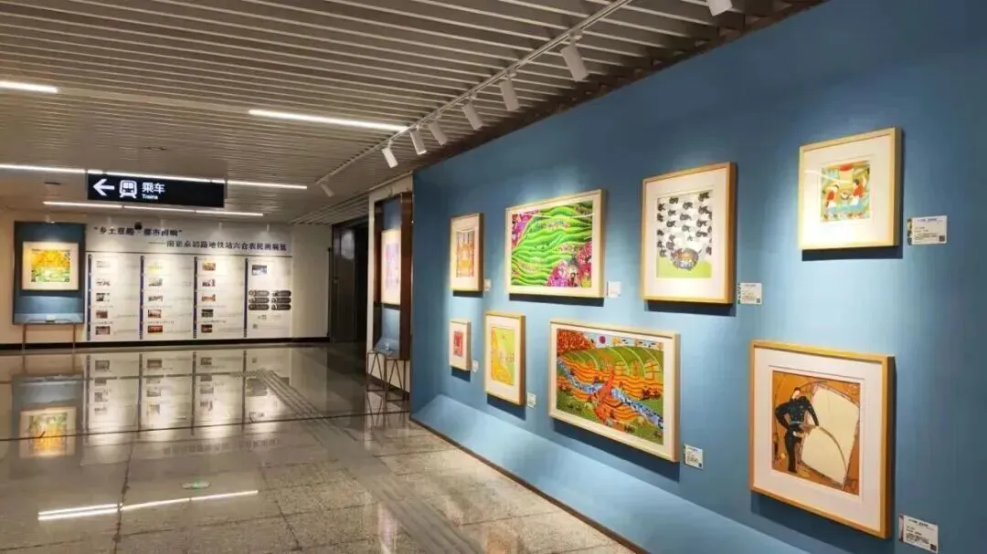 南京地铁永初路站“乡村意趣·都市回想”六合农民画展览以马年和春节为主题,色彩鲜艳,充满童趣。六合农民画美术馆举办的六合农民画迎新作品展充满生活温度,笔墨间流露着六合的民俗风情与新年期盼。
