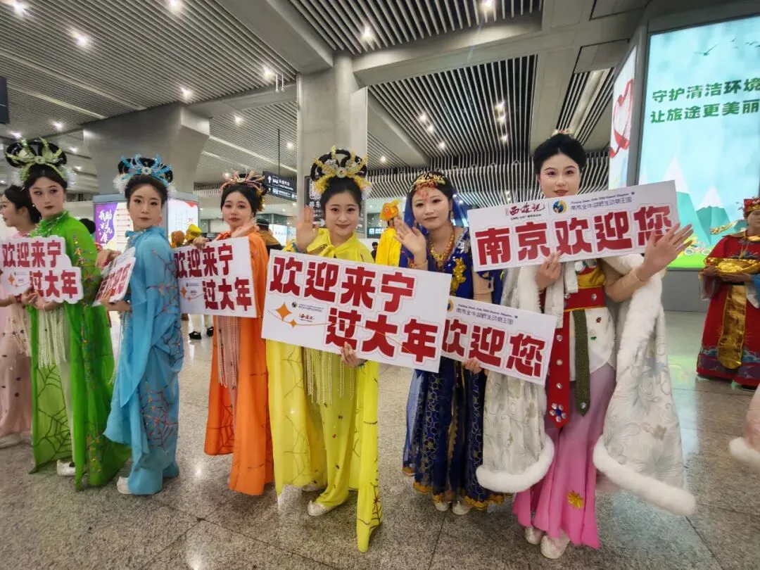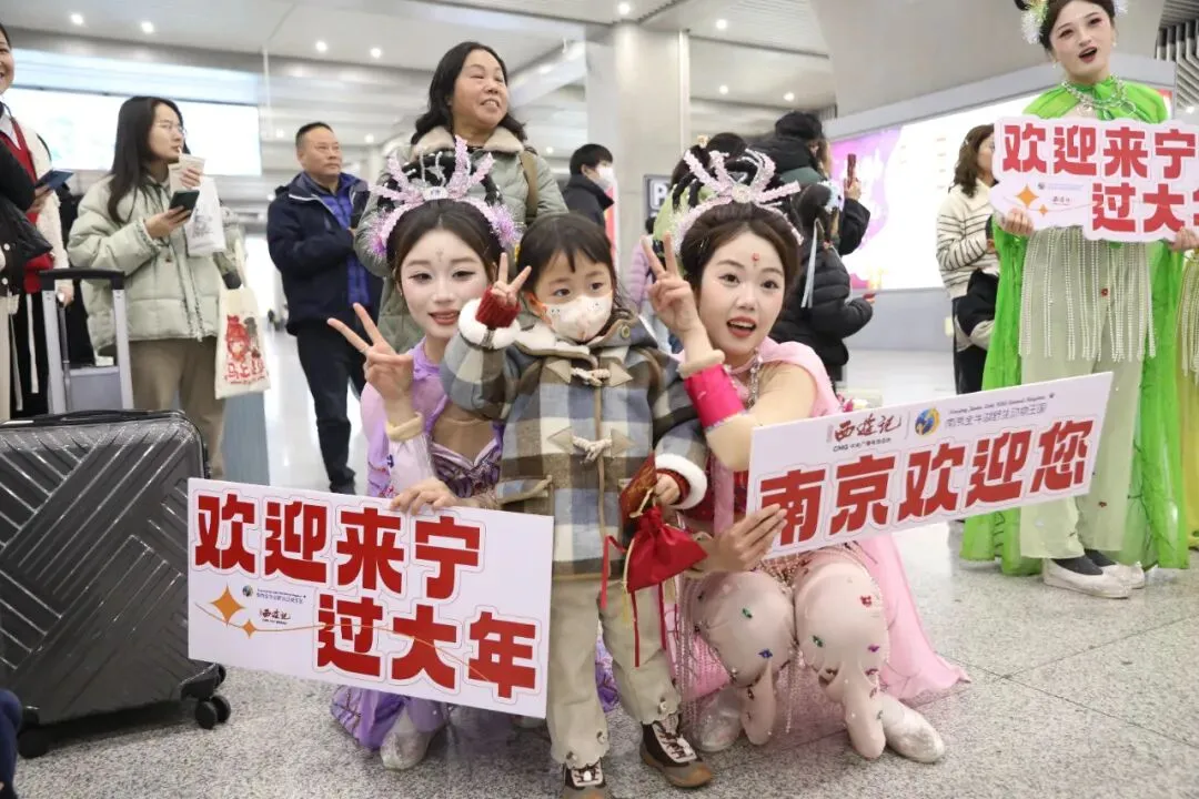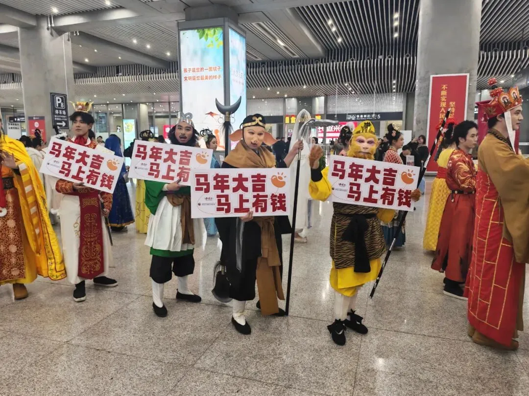 唐僧身披袈裟温文尔雅,孙悟空手持金箍棒神采飞扬,猪八戒揣着福袋憨态可掬,沙和尚挑着行囊朴实憨厚,还有仙气飘飘的嫦娥仙子、灵动俏皮的蜘蛛精们……2月13日下午,南京南站出站口人声鼎沸——央视86版《西游记》里,那些耳熟能详的神仙妖精们集体“下凡”,拿着横幅和手举牌,笑容满面地迎接每一位归人。