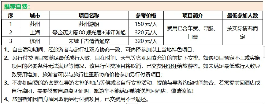 3.【用餐】:行程中含5早11正,25-30元餐标,其中鸭血粉丝和苏州小面10-15餐标,酒店房费含早餐;