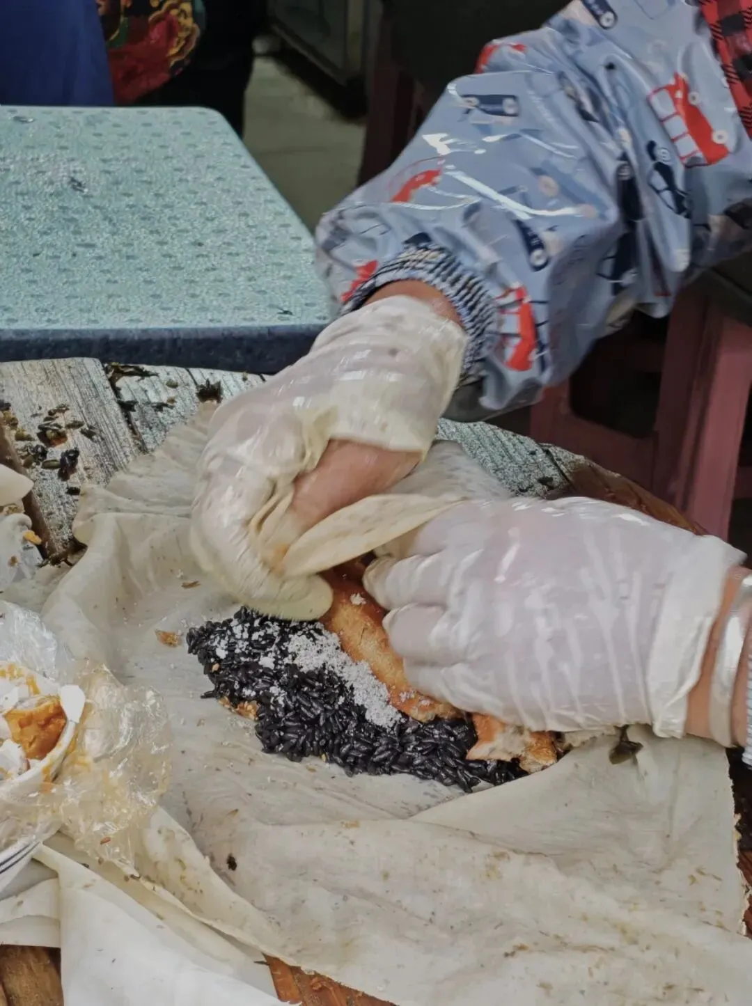 ✨买杂粮煎饼得时间充足才行,做一个煎饼至少2-3分钟,刚拿到手香味扑鼻,搭配一碗小馄饨,可以说是神仙美味级的早餐了。✨近期很火的麻团包乌饭油条,可以选甜口或者咸口,其实就是把我们熟知的两个单品结合在一起,据说每天都排长队,特意去的话没必要了。
