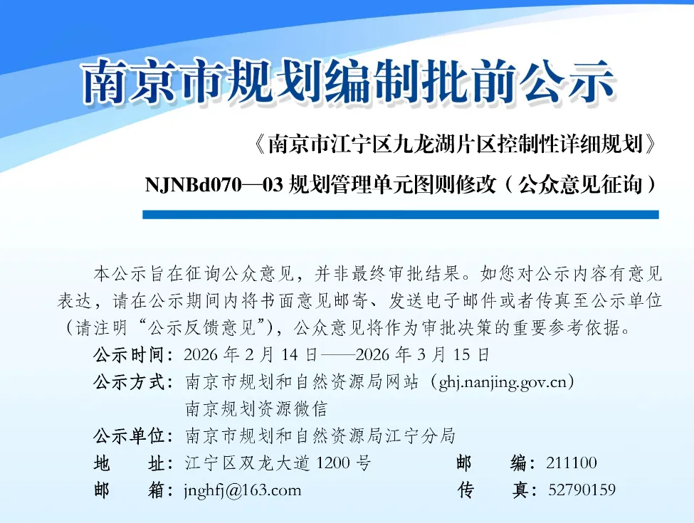 《南京市江宁区滨江新城江宁组团控制性详细规划》NJNBf010—10规划管理单元图则修改(公众意见征询)发布,江宁滨江新增2幅低密宅地。