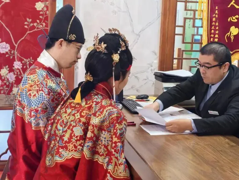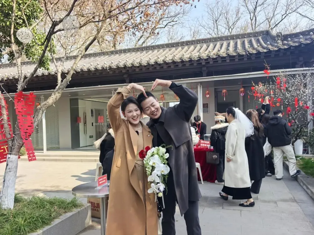南京的“领证游”正在成为新现象。除了玄武湖的“山水为证”,夫子庙“喜福馆”走的是传统路线。明制婚服、沃盥礼、同牢礼、合卺礼……一套流程走下来,新人王女士说:“我们从小在夫子庙边上长大,秦淮河、文德桥都是谈恋爱走过的地方。能在这儿办仪式,不是刻意找浪漫,是本来就有感情。”