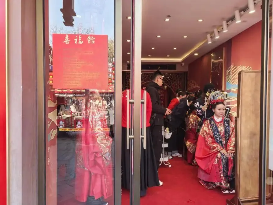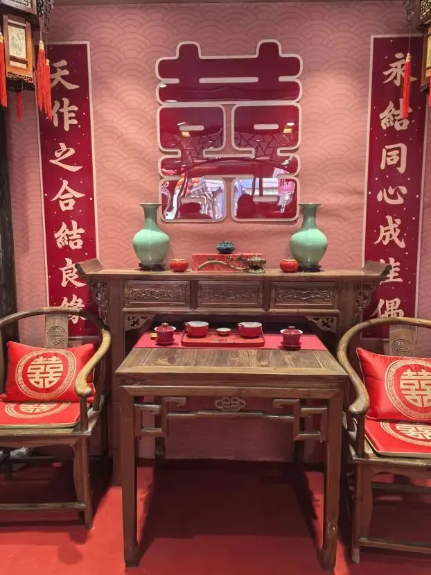 自2023年开馆以来,喜福馆已办理登记1500多对,免费传统婚俗体验超900场次。由于场地容量有限,目前仍实行预约制,只在周二、周六开放。