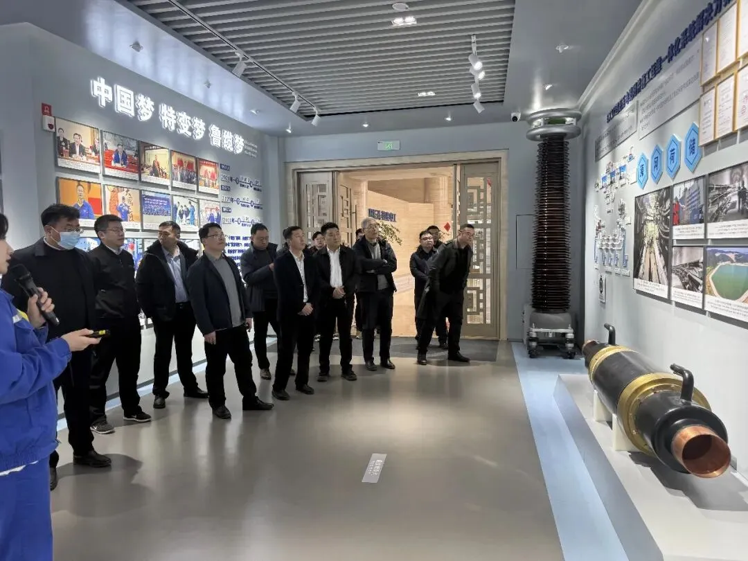 在特变电工山东鲁能泰山电缆有限公司,考察团参观了高压电缆展厅,深入了解企业 500kV电缆等核心产品的研发、生产与检测全流程。作为拥有近 60 年电缆研发生产经验的国家级高新技术企业,其深厚的技术积淀、完善的质量管控体系与行业领先的技术水平,让考察团成员深感震撼。