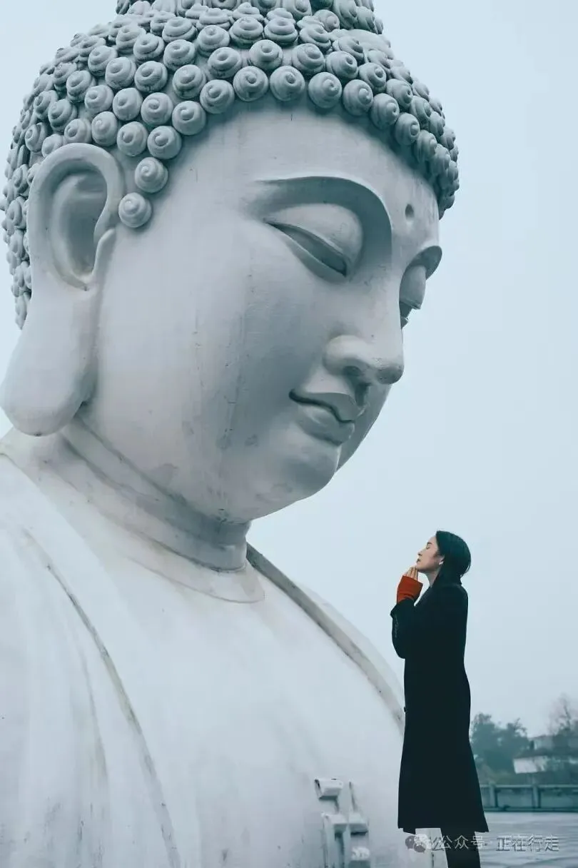东庐观音寺,便背倚东庐,面朝中山湖,静谧庄严。寺内有一尊宏伟的半山露天大佛,慈目垂视众生,与湖光山色相映成趣。