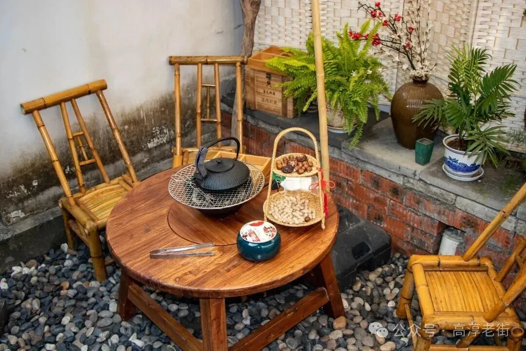 店主会精心搭配养生茶底,加入陈皮、枸杞、红枣等食材,温炉、注水、泡茶,整个过程慢慢悠悠。煮茶的同时,还能在炉子周围烤上几颗桂圆、板栗,茶香混着坚果的香气,温暖又治愈。在这里喝上一壶热乎的养生茶,聊聊家常,所有的疲惫都能烟消云散。