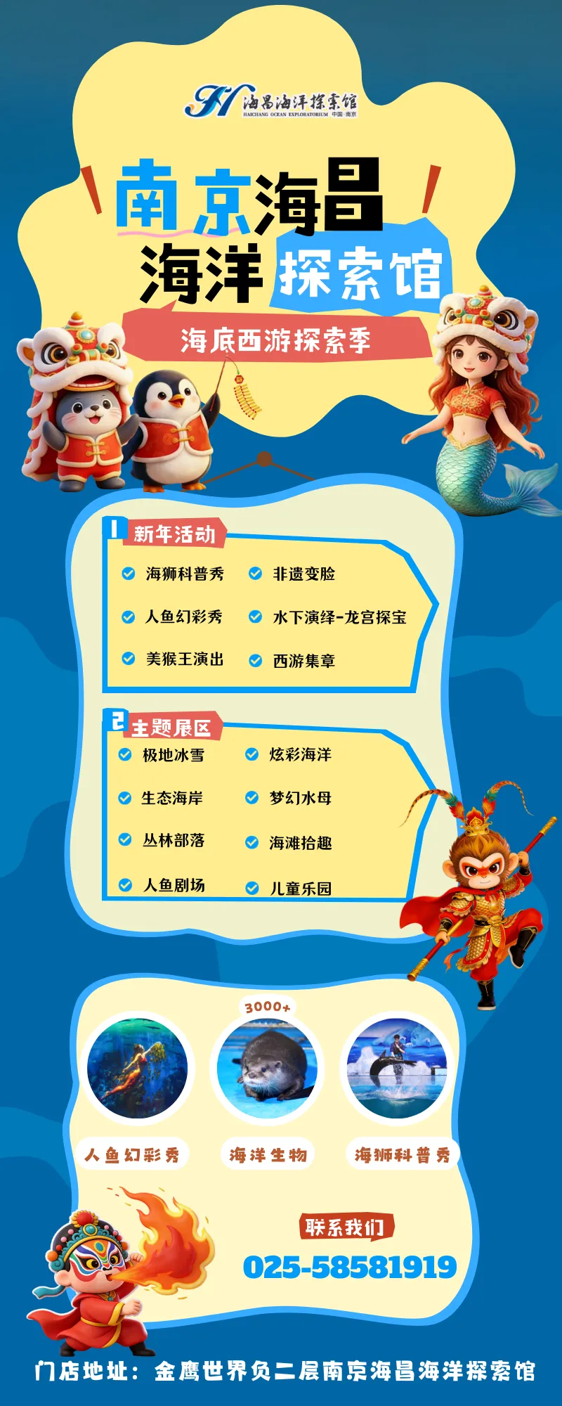 告别单调打卡,解锁「海底+国风」双重惊喜,集章打卡、美猴王演出、喷火、变脸特技燃炸全场,不管是亲子遛娃、好友同游,还是全家欢聚,都能在这里收获满满年味与欢喜~