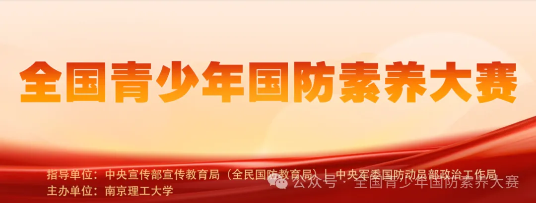 指导单位:中央宣传部宣传教育局、中央军委国防动员部政治工作局主办单位:南京理工大学参赛对象:小学、初中、普通高中、中职在校学生大赛官网报名:所有选手需通过官网统一报名