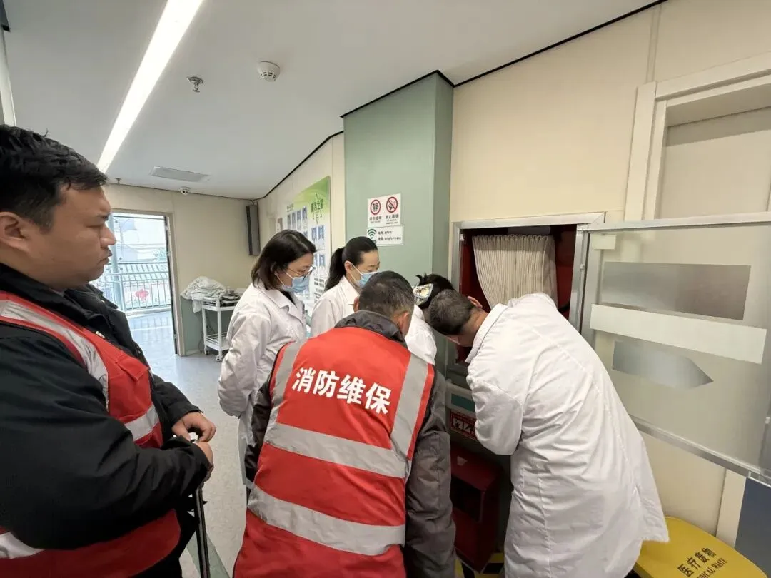 在消控中心,现场调阅值班记录,模拟火情报警响应流程;在各病区疏散通道,实测防火门闭启状态;抽查灭火器,扫码核验维保记录,确保“一器一码”可追溯。陆院长反复强调:“消防要落在脚下、盯在眼里,每个环节都必须闭环。”