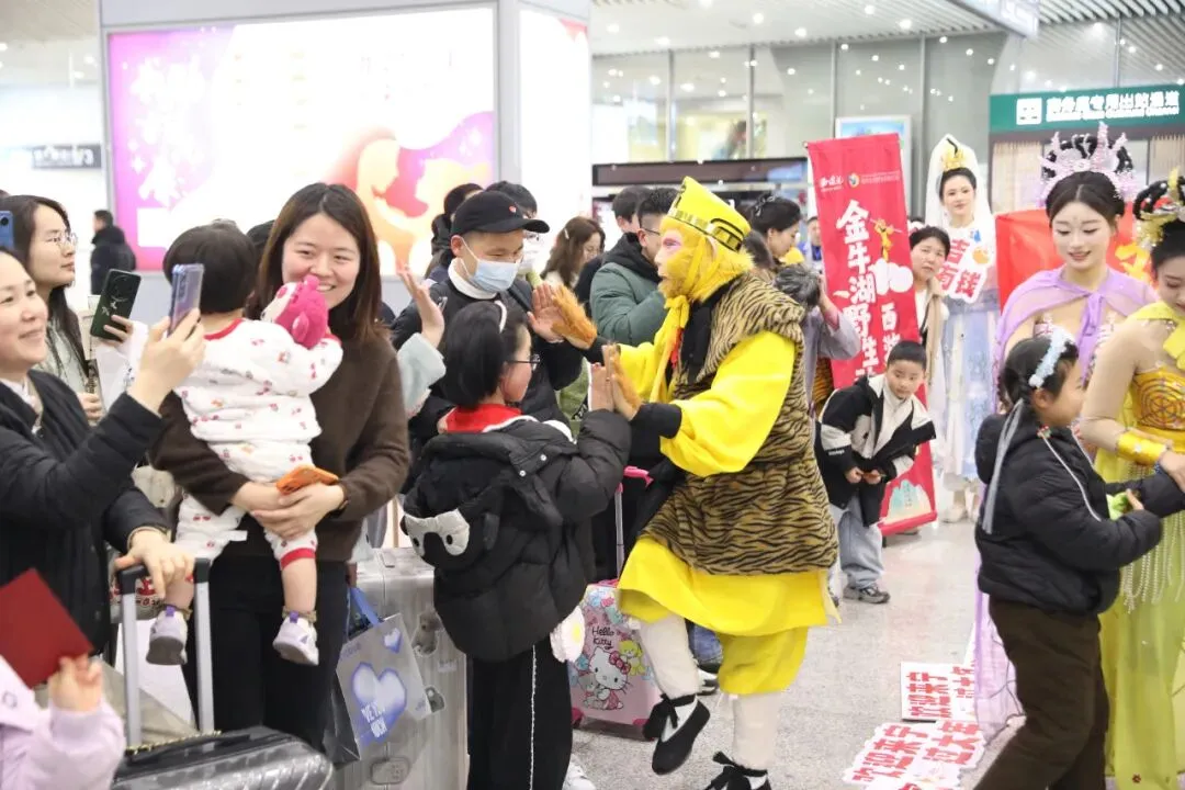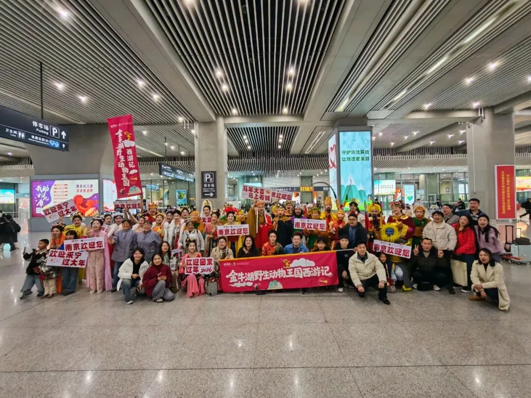 南京六合区金牛湖野生动物王国特意策划了这场“西游天团暖心接站”主题快闪活动,为的是给奔波在外的游子们送上新春惊喜,为返乡路增添几分年味与暖意。这些经典的西游角色走出荧幕,用最接地气的方式,迎接四海宾朋归宁、来宁过大年,让人来人往的车站,变成充满烟火气与幸福感的团圆驿站。